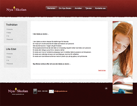 Nya skolan Tidigare projekt www.nyaskolan.se Färdigheter Upplagt på 28 augusti, 2015 ← Sjuntorps Webb Nordsvenska Tak AB →